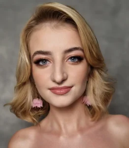 Zawsze tworzę makijaż, który współgra z fryzurą i suknią, nie ma efektu przemalowania czy maski, a do tego jest niewyczuwalny na skórze.